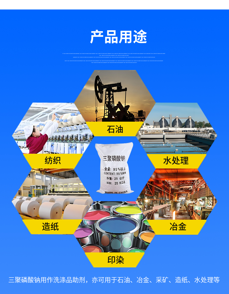 三聚磷酸鈉在工業(yè)中有多種應用,主要體現在以下幾個(gè)方面: