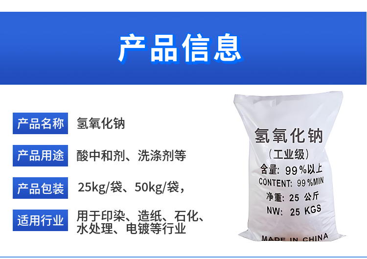 氫氧化鈉具有強堿性,腐蝕性強,可作酸中和劑、配合掩蔽劑、沉淀劑、沉淀掩蔽劑、顯色劑、皂化劑、去皮劑、洗滌劑等,用途非常廣泛。